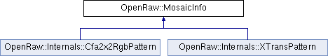 | MosaicInfo (::or_cfa_pattern pattern, uint16_t width, uint16_t height) | |